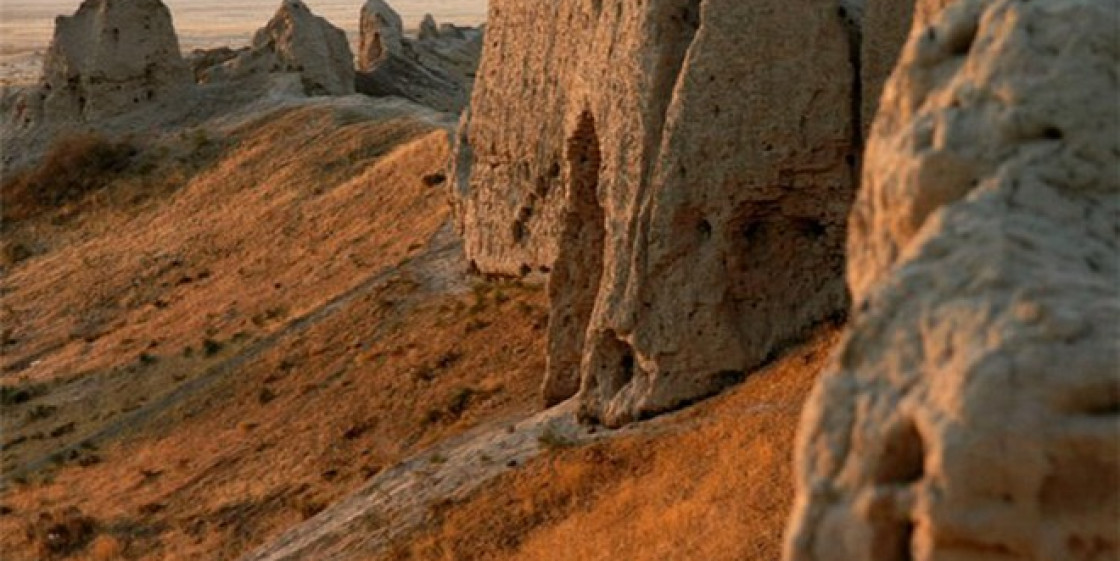 Руины этого древнего города высятся остатками своих крепостных стен в 45 километрах к западу от города Туркестана Южно Казахстанской области. Внимание многочисленных путников, следующих по трассе Туркестан – Кызылорда, неизменно привлекает затейливый зубчатый контур крепостных стен.