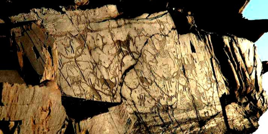 Сақ заманының петроглифтерінде жабайы аңдардың, жануарлардың бір-бірімен айқасқан қимылдары арқылы заманның шым-шытырық оқиғаларын зооморфтық ерекше кодтар арқылы көрсеткен. Жартастағы суреттерде жыл мезгілдерінің ауысуы сияқты табиғи құбылыстар айқын аңғарылады. Мұндай көріністер металдан, ағаштан, теріден жасалған күнделікті тұрмысқа қажетті заттарға да салынған. Ескерткіш біздің замаңыздан бұрын 1–2-мыңжылдыққа жатады.